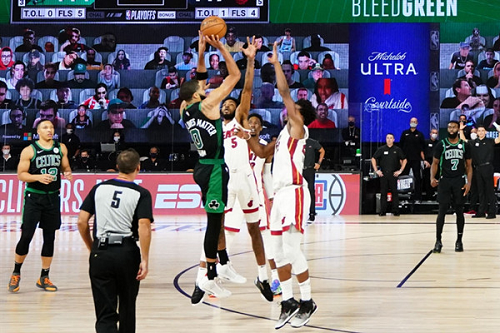 55NBA直播讯,北京时间9月16日06:30,东部决赛第一场开打,由热火对阵凯尔特人,热火在前3节还落后12分,第4节巴特勒的关键三分球打平拖入加时赛,随后在加时赛最后1分钟巴特勒突破上篮...
