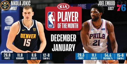 本赛季首月最佳球员:恩比德和约基奇分别当选