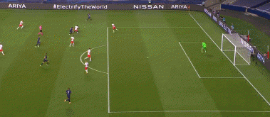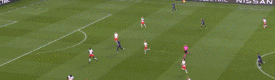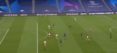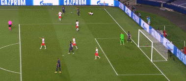 本场比赛,纳格尔斯曼出人意料地排出了四后卫阵型。面对内马尔、姆巴佩、迪马利亚组成的攻击线,四后卫阵型无论是在防守密度上亦或是横向覆盖面积上都有不足。而且为了防止留给巴黎在中路的空间过多,莱比锡的防守阵型相对的还要更加收缩,这更是给了巴黎两个边路更多的空间。