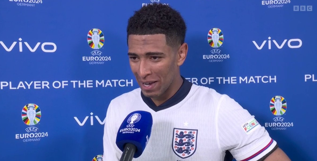 在欧洲杯小组赛首轮,贝林厄姆攻入了关键的制胜球,帮助英格兰队以1-0击败塞尔维亚。赛后,他接受了媒体采访,分享了自己的比赛感受和心得。